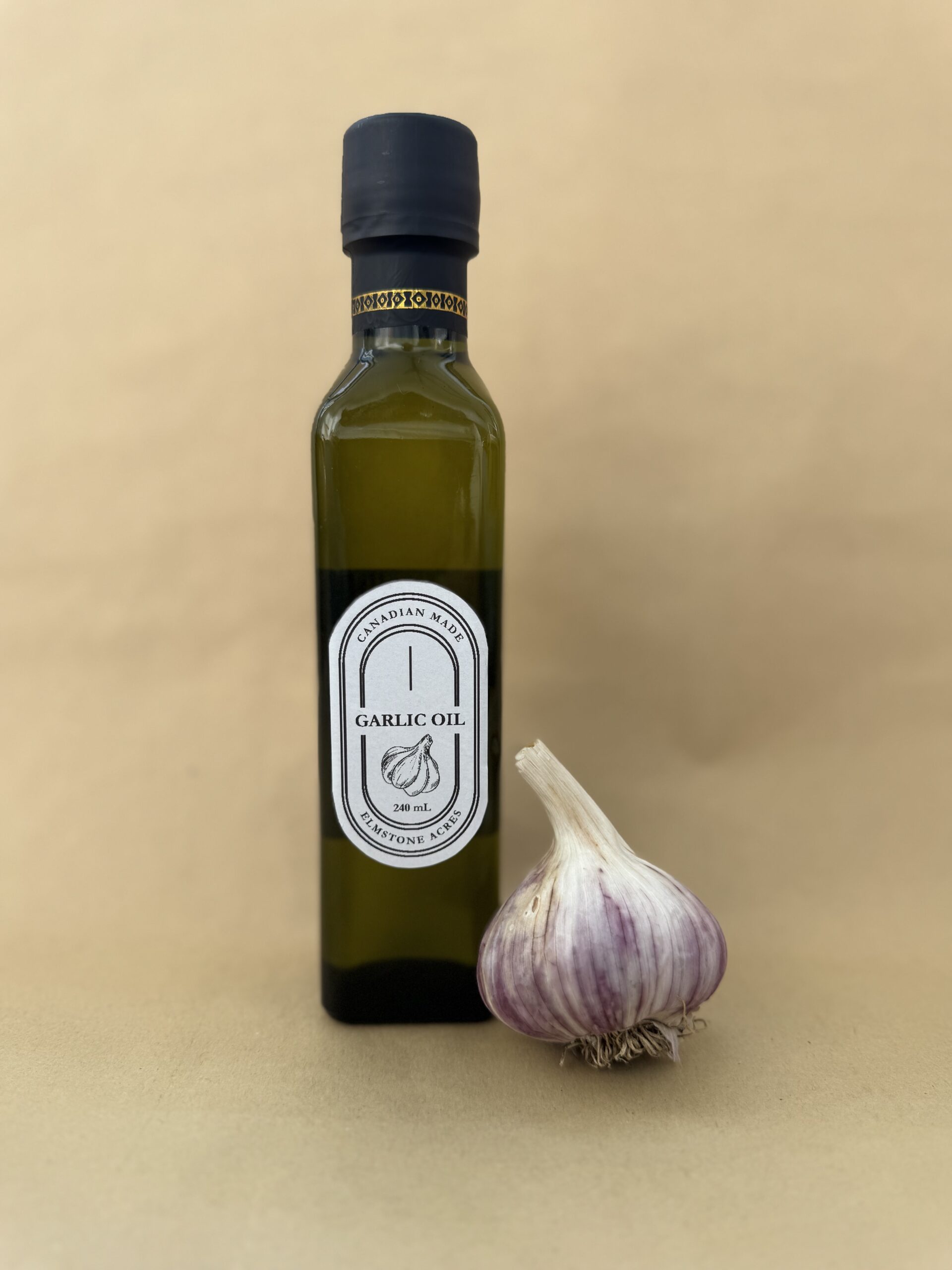 We handle every step—from planting and harvesting the garlic to preparing and bottling the finished oil—right here in Canada. The result is a clean, vibrant infusion with a true farm-to-bottle story.